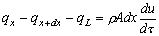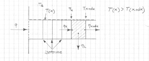 Essendo qx il flusso termico che, per conduzione, entra nell’elemento di ascissa x, q il flusso relativo alla superficie laterale, ρ e u rispettivamente la densità e l’energia interna del materiale di cui è costituita la barra. In regime stazionario (assumendo A costante) il bilancio termico espresso dalla equazione 1 diventa: