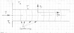 Tuttavia, assumendo che il materiale costituente sia un buon conduttore, la dispersione trasversale richiede piccoli gradienti per cui può essere lecito ritenere isoterme le sezioni trasversali come illustrato dalla figura.