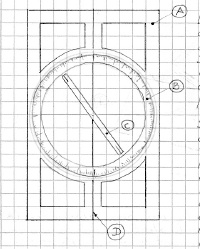 Si posiziona la linea mediana D del telaio, individuata dallo zero dell’anello graduato, sulla linea del meridiano geografico che può essere dedotta da una meridiana. L’angolo che l’ago, in posizione di equilibrio, forma con la linea meridiana della lastra indica la declinazione magnetica del luogo.