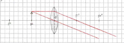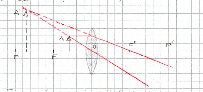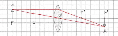In questo caso l’immagine si forma dall’altra parte della lente tra il doppio della distanza focale P’ e l’infinito ed è reale, capovolta ed ingrandita.