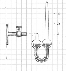 E’ costituito da un tubo ad U in cui uno dei rami è chiuso e contiene aria secca o (dato che a pressioni elevate l’ossigeno dell’aria viene assorbito dal mercurio) azoto o idrogeno. L’ altro ramo comunica col serbatoio del gas di cui si vuole misurare la pressione. Nel gomito c’è del mercurio che arriva allo stesso livello quando nel serbatoio vi è un gas a pressione atmosferica. Se la pressione del gas aumenta il mercurio si alza nel ramo chiuso comprimendovi l’aria che vi è imprigionata la quale, in base alla legge di Boyle: